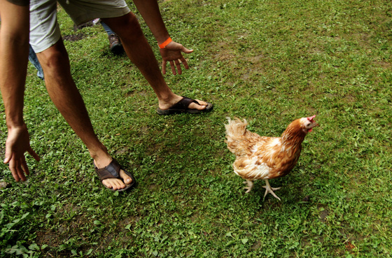 Az utolsó versenynapra, szombatra a szervezők beszereztek öt tyúkot – mégse egy szerencsétlen állatot terrorizáljon tizenkét csapat a tyúkkergetéskor. Felkészültünk, kiengedtük őket a ketrecből, a csapatok rárontottak a tyúkokra – ők pedig hagyták. Nagyon úgy tűnt, nekik semmi kedvük futkosni egy rakás megkergült egyetemista elől, inkább maguk ugráltak vissza a ládába. Ennyire passzív állatokkal nem lehetett semmit kezdeni, a tyúkkergetés így aztán kudarcba fulladt. A tyúkokat pedig, bosszúból, amiért nem voltak hajlandóak együttműködni, és elrontották a játékunkat, levágtuk, és megfőztük őket levesnek. Így jártak…
