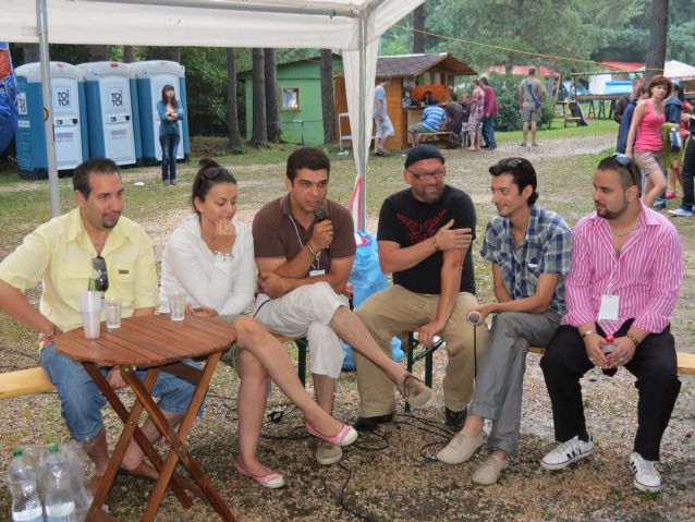 Míg a legtöbb embernek a nyár az önfeledt pihenés és láblógatás időszaka, a Budapest Bár nem tétlenkedik. Rögtön a jövő héten 11 másik ország képviselőivel együtt fellépnek az olimpiai ünnepségekhez kapcsolódó BT River Of Music fesztiválon. Ezt követően a nyári koncertek mellett lázas próbák következnek, hisz augusztus 2-án lesz a Vajdai Vilmos rendezte, Szerencsés flótás névre elkeresztelt, az 50-es, 60-as évek zenéit feldolgozó operett premierje. A zenekar vendégművészei a magyar popzenei szféra jeles képviselői, akik szintén nem panaszkodhatnak a koncertmeghívásokra. Ezért is ,,hétköznapi” banda a Budapest Bár. A hétköznapi fellépési dátumok ellenére sem szokott egy átlagos koncerten hatnál több vendégelőadó összejönni ,és hogy mind a tízen jelen legyenek egy-egy koncerten, havi egynél több alkalommal nem sűrűn fordul elő. Azt, hogy ki melyik koncerten lépjen fel, elsősorban a szervezők kérése alapján, afelett pedig a ,,ki mikor ér rá?” módszerrel oldják. Bár az otthoniak tegnap délután még a melegre panaszkodtak, Krasznahorkára megérkezett az eső, ami szerencsére csak a tócsák számát növelte, de az esti koncertet nem mosta el. Bár az elején még bizonytalankodott a nép és inkább a kocsmából hallgatta/nézegette, mi zajlik a színpadon, a Budapest Bár által képviselt, a múlt század eleji kávéházi cigányzenére alapozó, jazzel és némi elektronikával felturbózott, olykor-olykor népzenei motívumokat felvonultató, míg máskor bosa novás zenéje hamar kicsalogatta a legkényesebb táborlakót is a táncparkettre. A koncert után még leültünk beszélgetni a frontemberrel, Farkas Róberttel, aki a született zenész definíció megtestesítője. Muzsikus családból származik, gyerekkorában kezdett zenélni és azóta az egész élete a zene körül forog. Zenekari pályafutását a 100 Tagú Cigányzenekarban kezdte és a Budapest Bár előtt olyan bandákban tűnt fel, mint a Kistehén Tánczenekar és a Besh o droM. Aki lemaradt volna a közönségtalálkozóról, a Szlovákiai Magyar Interaktív Televízió honlapján megtalálja a felvételt, a Farkas Róberttel készült interjú pedig a tábor weboldalán és az Új Szó hasábjain lesz olvasható még a napokban.