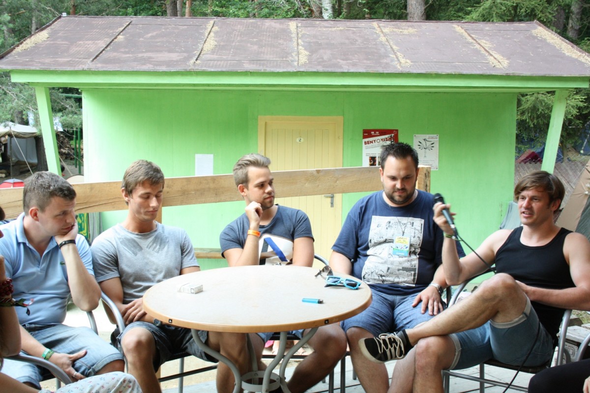 Az esti zivatarnak nyoma sem volt még, verőfényes napsütésben ültek a kávéház teraszára a Semi Holsen tagjai, név szerint Oravec Gabi, Kóbori Dávid, Kobák Olivér, Szabó Nándor és Nádasdi Peti. A beszélgetést a Barackliget című film vetítése előzte meg, melynek főszereplője Peti, a zenekar frontembere. Stílusosan egy üveg barackpálinka, is jutott az asztalra, ami a jó hangulatot volt hivatott biztosítani az esti koncert előtt. A zenekar, akit elsőként a kezdetekről faggattunk, elárulta, hogy 2009 decemberében játszották első koncertjüket, amely az a bizonyos mérföldkő volt a zenekar életében.